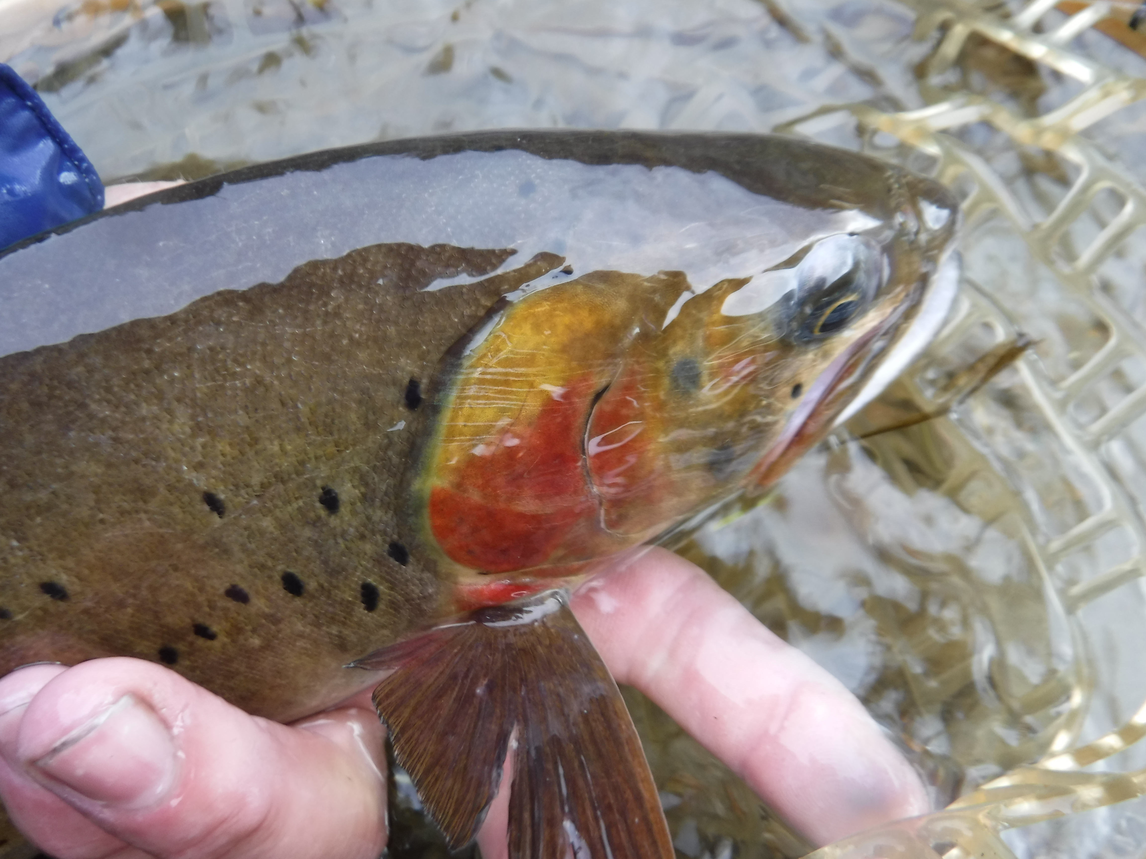 The black woolly bugger ending up catching a few nice fish, mostly from the middle of shin-deep riffles over rocky bottoms unsuitable for spawning, so I felt fine about catching them and they all swam off afterwards to continue on their way.
