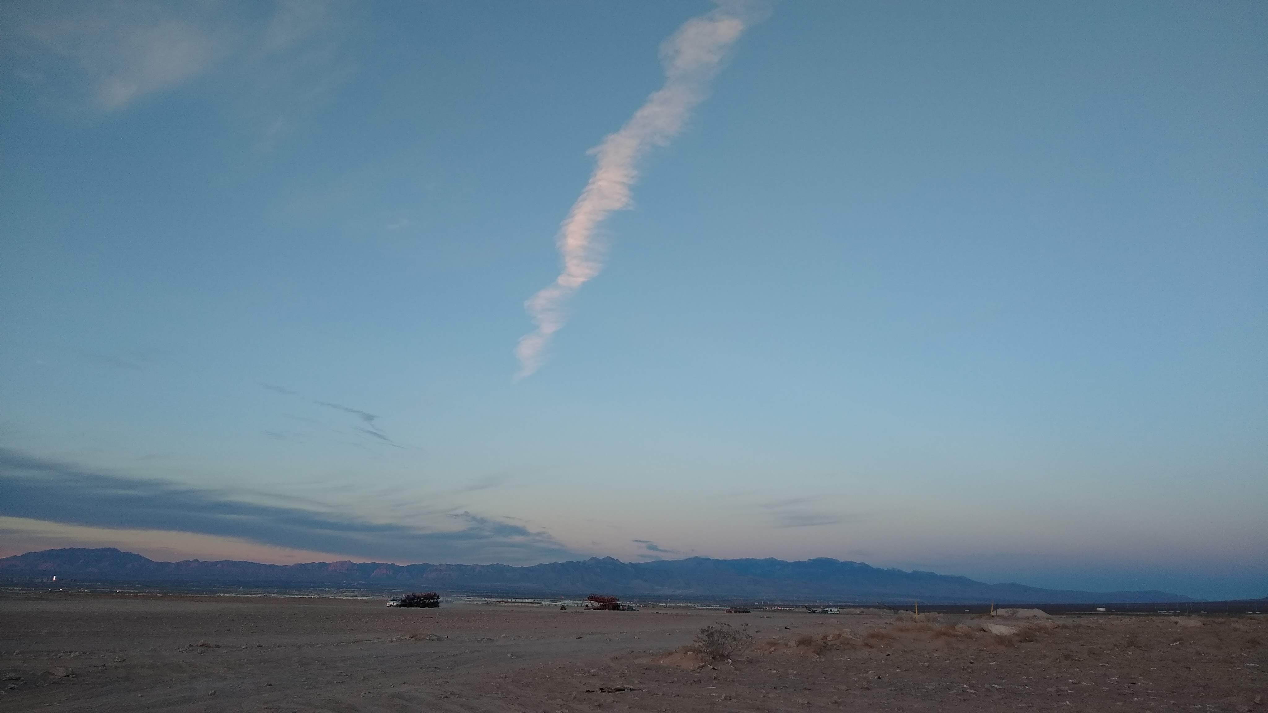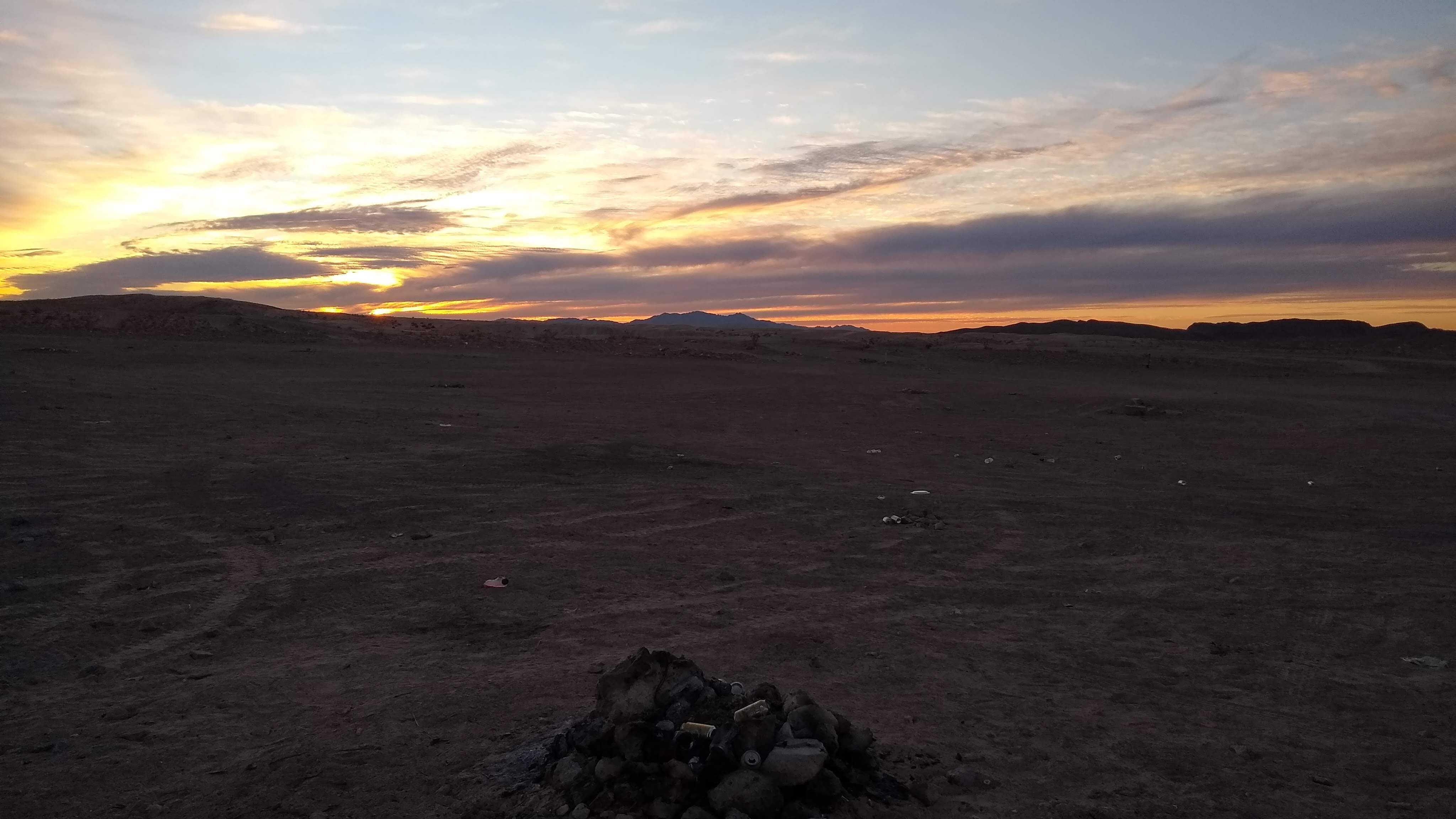 I drove farther south to the first large BLM sign describing Nellis Dunes, and it also said “No Camping”. However, there were stone fire rings widely scattered across the area. I drove in further, over towards a couple of trucks and trailers that had some off road riders gathered around and asked if they knew what the camping situation was. I got a response in Spanish with a sweeping arm gesture and thumbs up. So OK, I optimistically guessed?