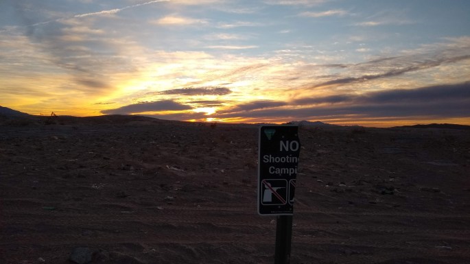 I was looking for a spot closer to Las Vegas Motor Speedway, where there was a kart racing event that I wanted to visit, and literally across the street is a large BLM managed area for off road riding. Nellis Dunes is listed on the BLM website as Dispersed – Nellis Dunes. It does not say that camping is prohibited. It only says, “No facilities or services are available within the recreation area.”