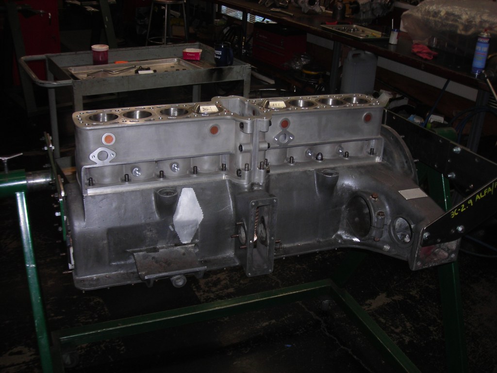 The 8C 2300s that I’ve worked on all had magnesium crankcases with aluminum main caps. They had two aluminum cylinder blocks with iron liners, and a separate cylinder head that was also made in two four cylinder sections. The later 8C 2900 had a mono-blocks that eliminated the head gasket, the heads cast in-unit with the cylinders. Which makes doing valve work more difficult, but eliminates the possibility of head gasket leaks. Mono-blocks were commonly used by many manufacturers, including Bugatti.
