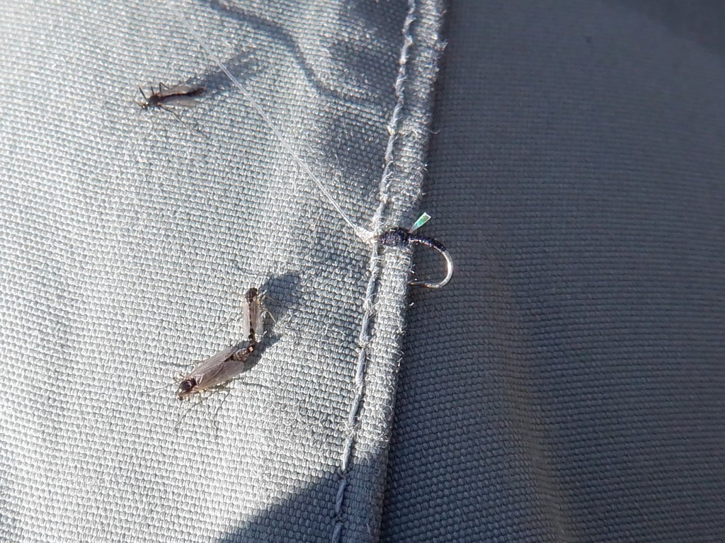 I’ve been on the river for a week and overall, my experience has been sorta ho-hum. I want to succeed at the challenge of catching big fish on tiny flies, but so far, this rainbow was the first sub-surface win, on the swing though, not under a yarn indicator. I’ve caught a few on top, despite this river having a poor reputation for dry fly fishing. One of the biggest hassles is that there is a ton of algae and goop in the water, and my size 24 and 26 midges keep coming back coated in slime. Another thing with a San Juan moniker I’ve learned is “the San Juan Slap”. Everyone on the river swings their rig in a big circle and slaps it on the water to fling the crud off their flies. It’s a pretty annoying background noise.