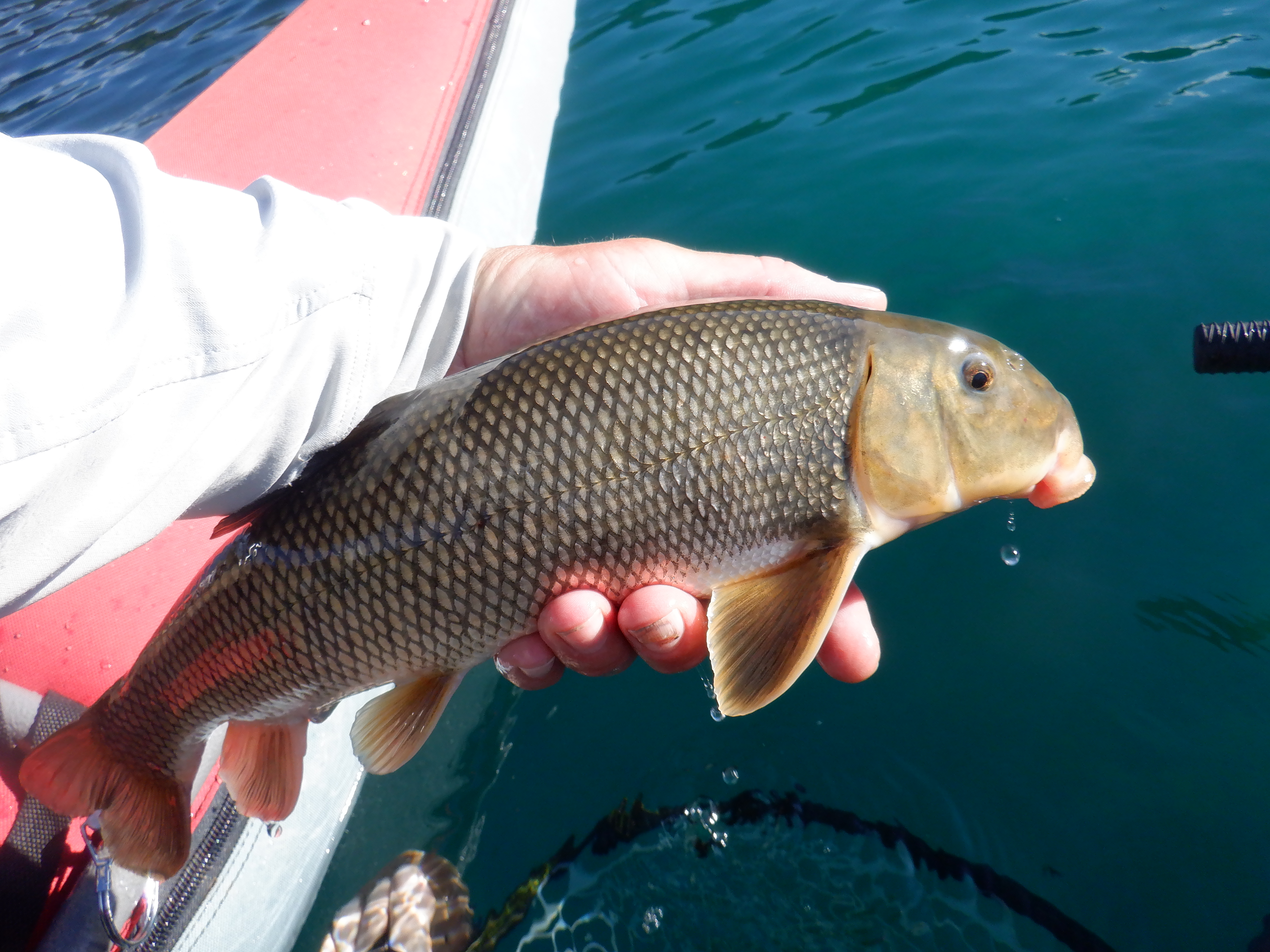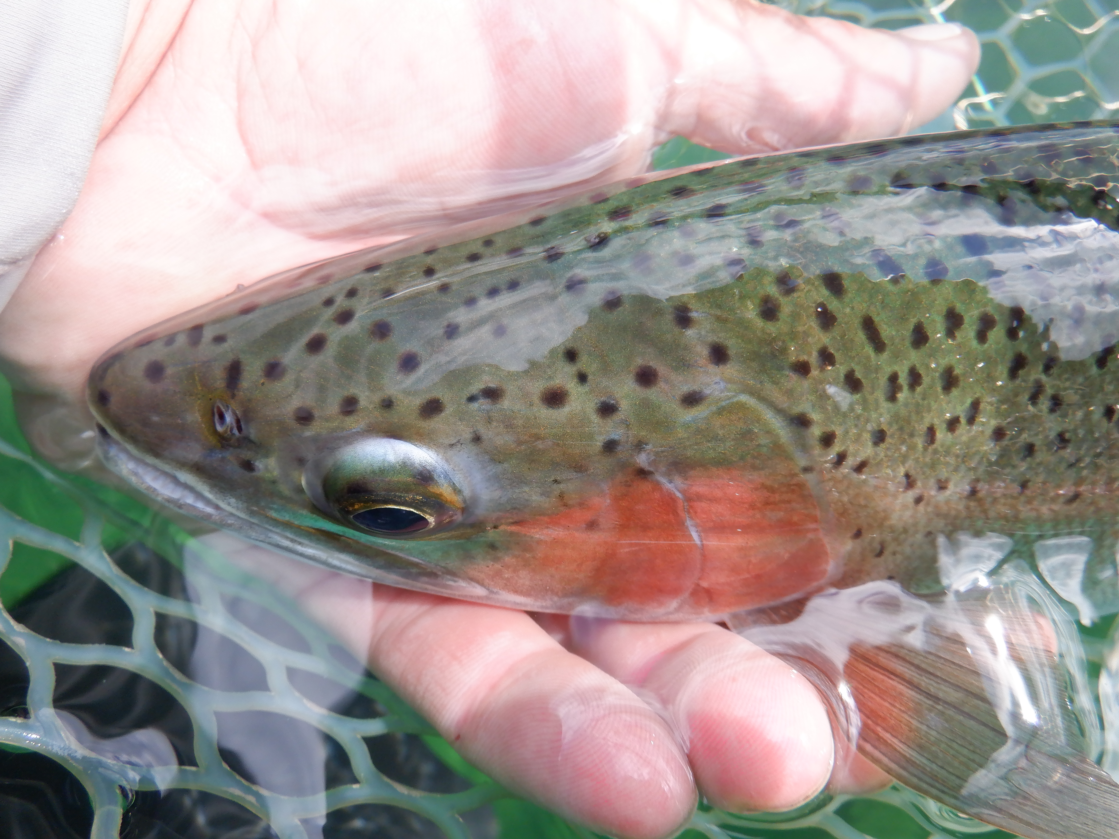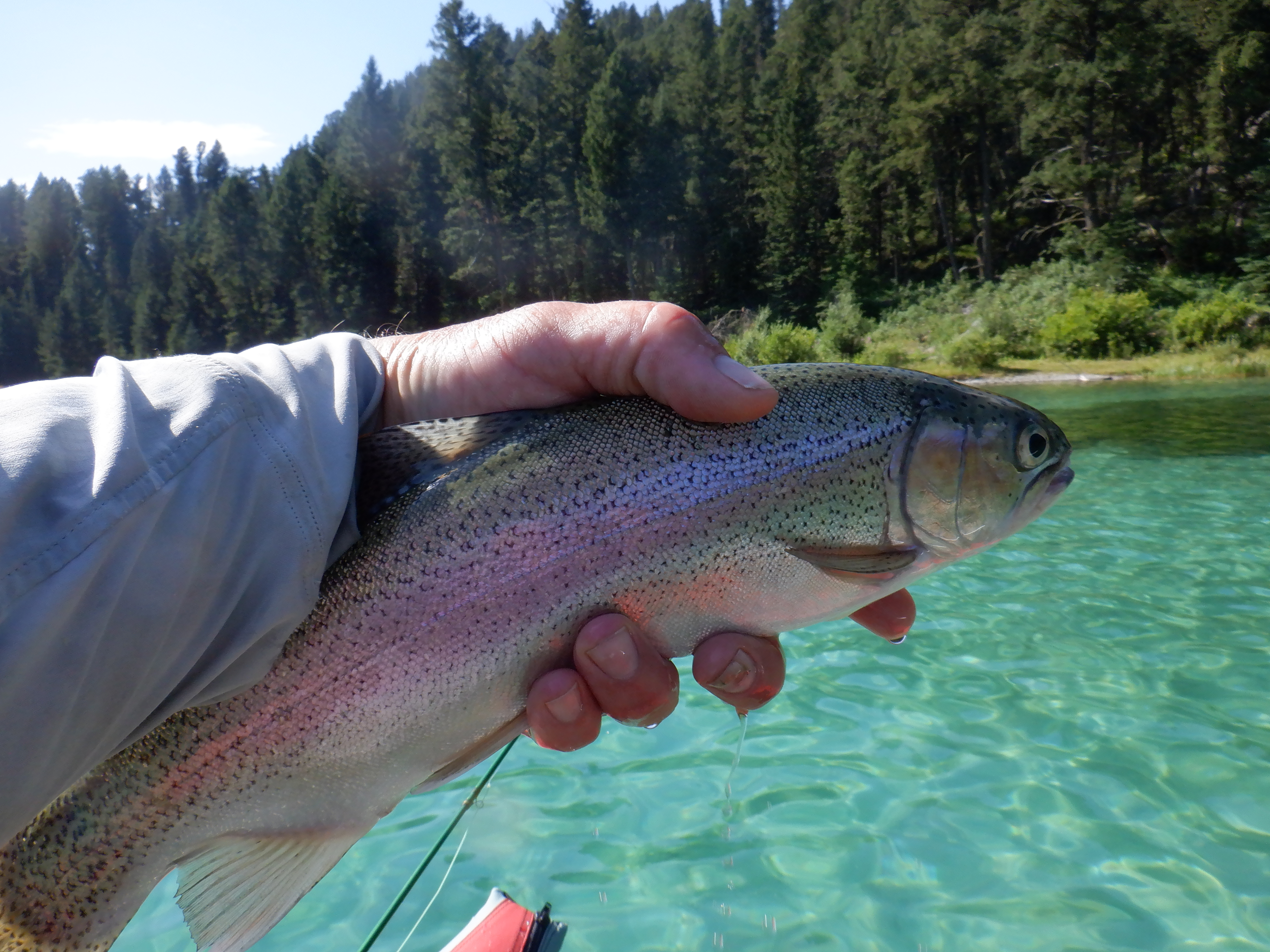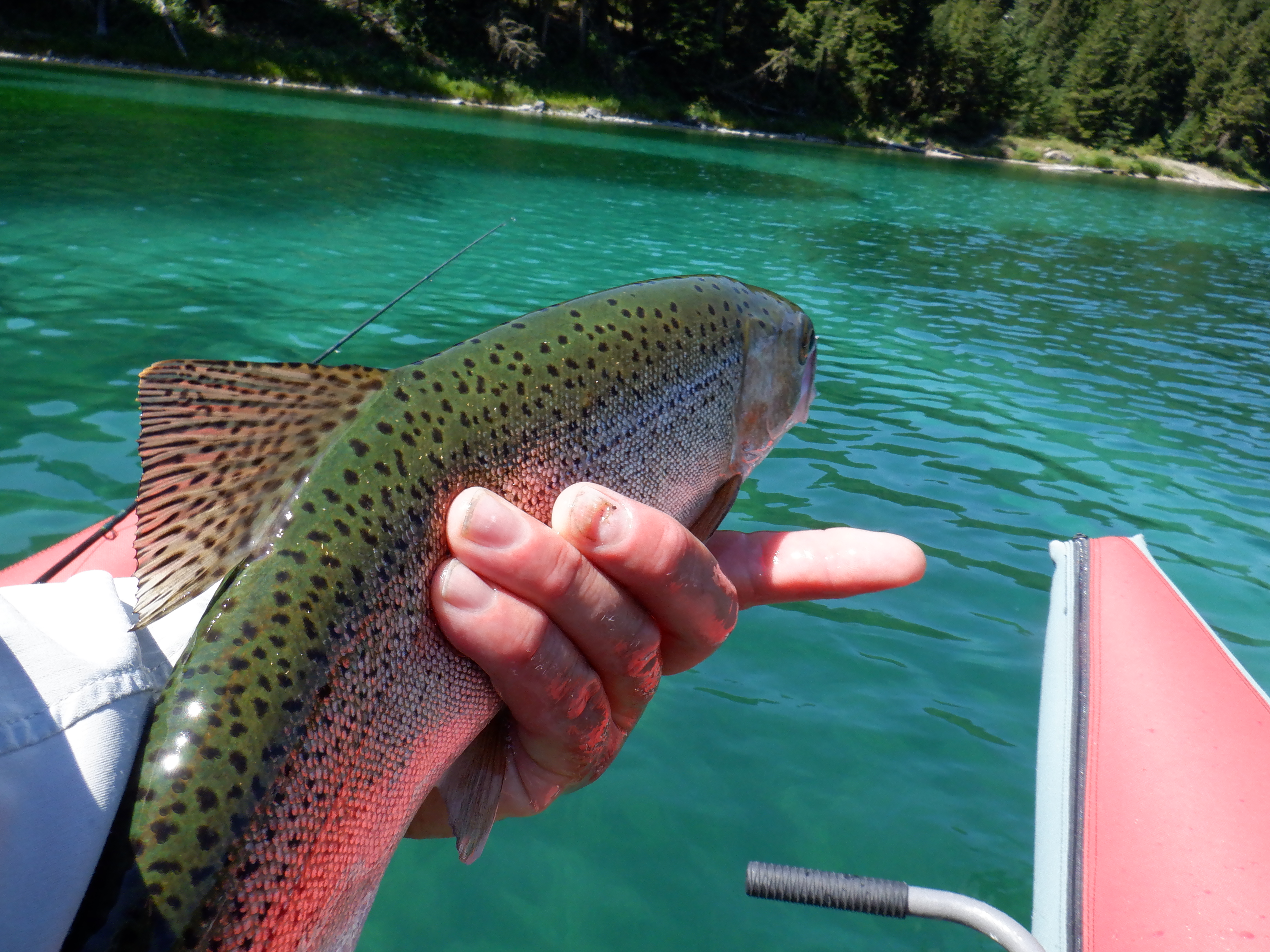 There were some fish eating callibaetis mayflies off the surface, so I did get some dry fly action. But most of the fish were eating bugs near the bottom. Since it was so clear, you could easily sight fish to an individual 10 feet deep. I used an intermediate sinking line to get down and most fish ate a leech or woolly bugger, but some ate a trailing hare’s ear or prince nymph. They were not choosy.