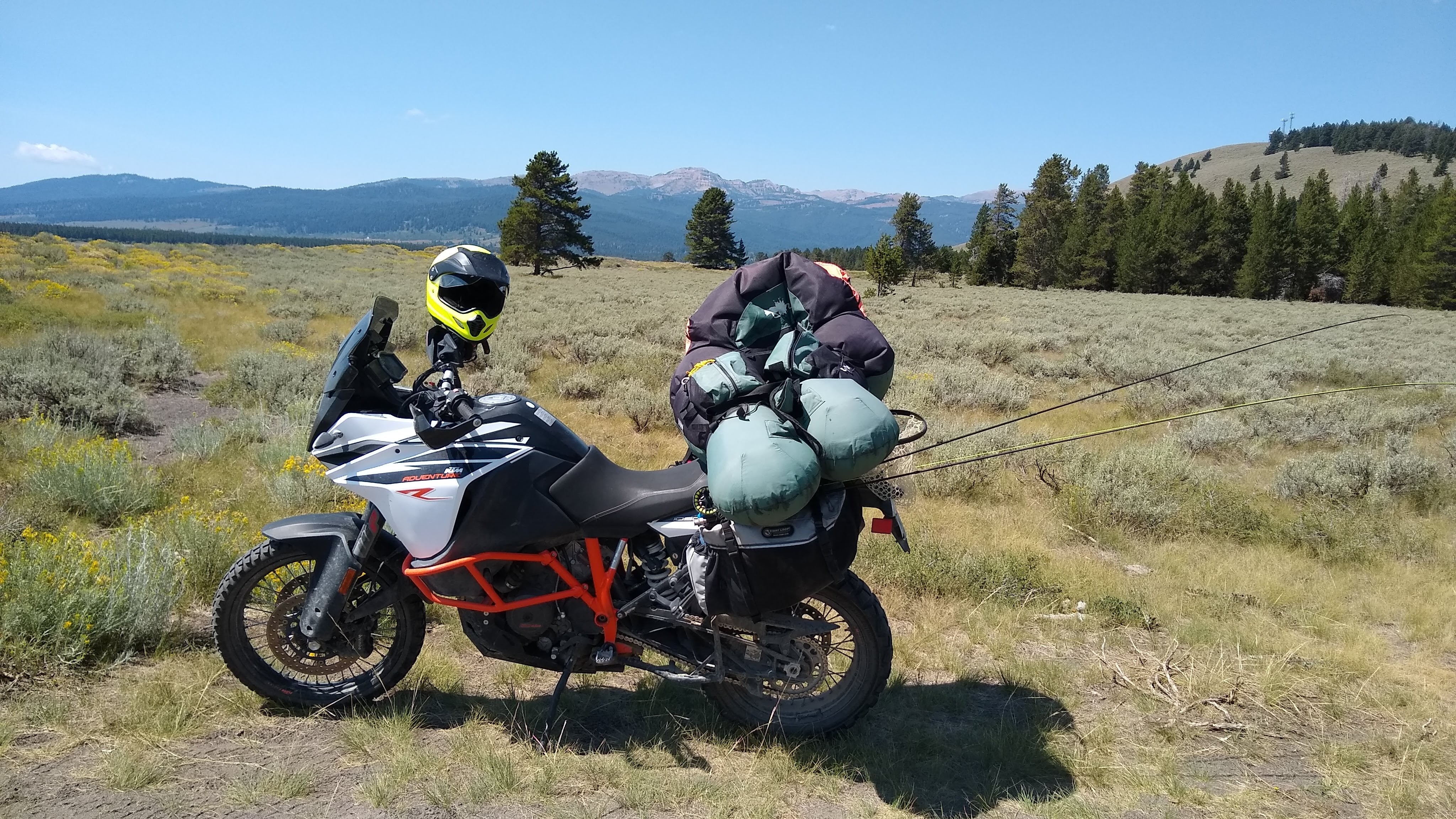 I moved from Hebgen to the Raynolds Pass fishing access site, where I unloaded the KTM to go and scout campsites at Wade. The campground near the lake is 50/50 reservations and first come – first serve, and though it was full on a Wednesday evening, I found an ideal spot that was going to open the next morning and made a handshake deal to occupy it when the current folks departed.