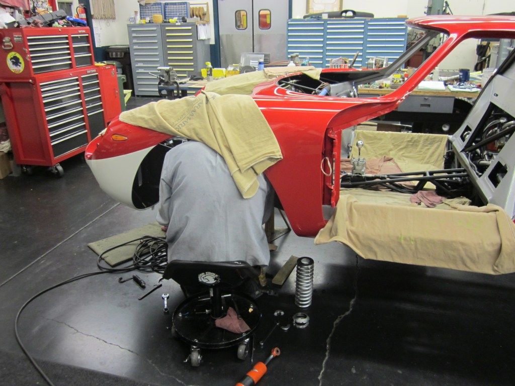 In 2009 I did a small amount of work on an early 166 project, which was a major undertaking with several players besides Phil Reilly & Co. Actually, after investigating a bit I found that we had very little to do with it. The motor was done at Patrick Ottis’ shop and the major chassis and body work was done by Curtis Patience in Oregon. I recall looking at the suspension pieces as it first arrived, and it was just awful, hacked together. After vast amounts of work by many hands, the final assembly and sorting apparently happened adjacent to me, but I can’t for the life of me recall any of it. According to the RM auctions sales blurb,