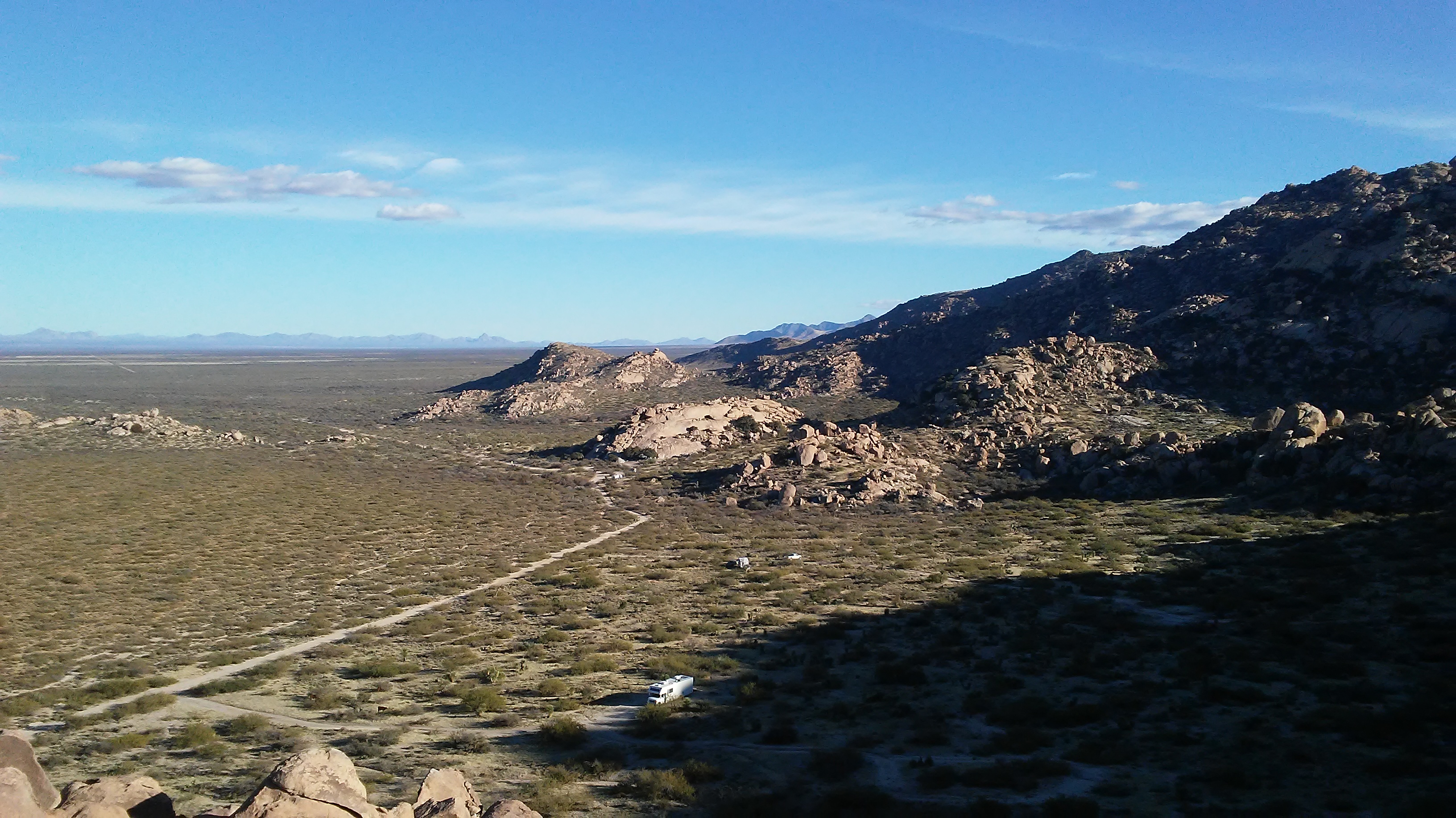 Lake Havasu can be difficult to access without a boat, and cheap or free camping spots on the water were hard to find. I spent a couple of weeks at a BLM site called Standard Wash south of Havasu City, but was sidelined by a foot injury that made hiking around impossible. On a scouting ride to the lake, I did see predatory fish slashing at baitfish (out of casting range of course). However, the noise of open-piped 427-powered speedboats put a damper on peace and quiet.