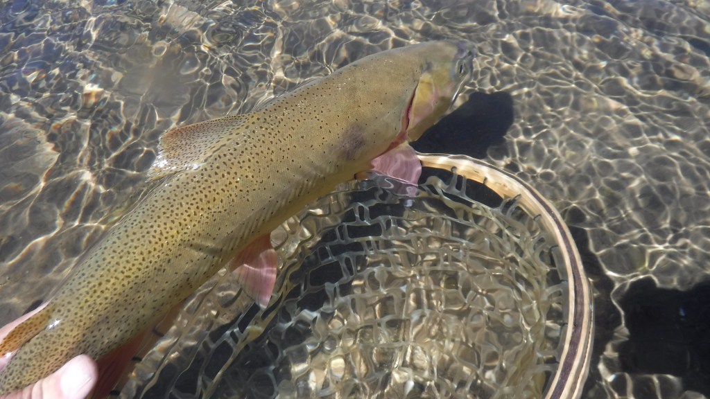 It also doesn’t open until August 1, which gives the fish some prime summer days without pressure. I was shocked when I went to check the regs though, that Flat Creek is NOT catch and release only! You are allowed six fish a day, one of which can be a cutthroat over 20″. I caught one about that size the last time I was there and there’s no way I was going to bonk it on the head and cook it. There are plenty of brook trout farther up the canyon that are good eats… if that’s your jam.