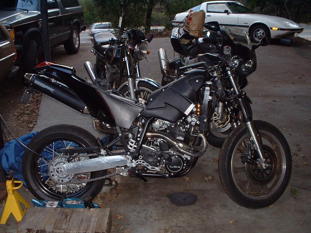 Then I bought my first KTM, a 2001 Duke II that had been crashed and was missing the front end. I figured it’d be easy to find forks and a wheel on Ebay, but it took a long time to get the correct parts. I had bought a second XS500 for parts, and what do you know, the steering stem bearings were the same as the KTM, so I mounted a ’77 Yamaha front end to the 2001 KTM! There is no limit to the dumb things you can do with motorcycles.