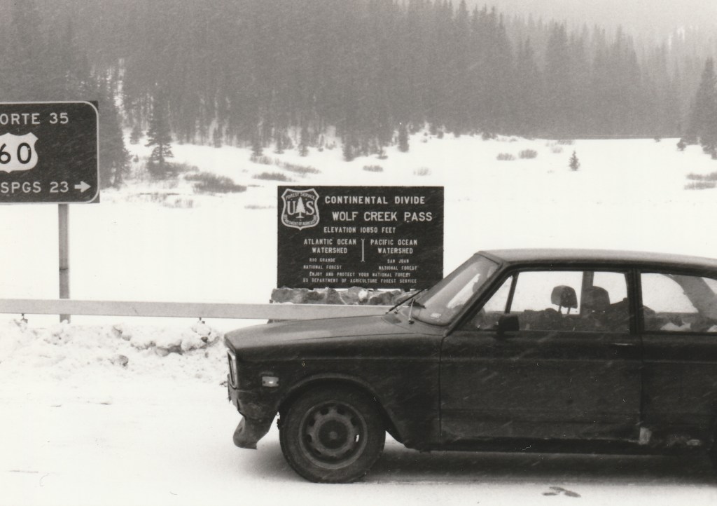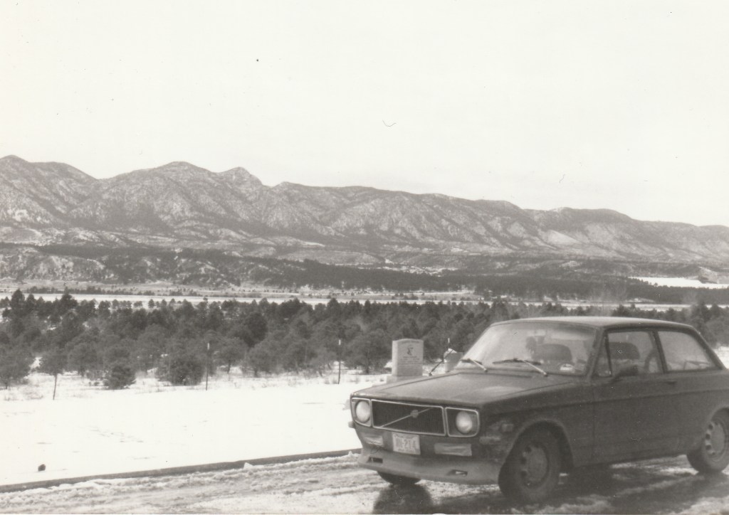 Though the car ran fine for the rest of the trip, the road conditions were challenging. There was a memorable stretch of frozen highway somewhere in Nebraska, or maybe eastern Colorado, where it was a difficult to keep the car pointed straight and between the lines. I stopped once to have a look at a station wagon that had slipped off the road and rolled on its side, but was ordered to keep moving by the second cop of the trip.