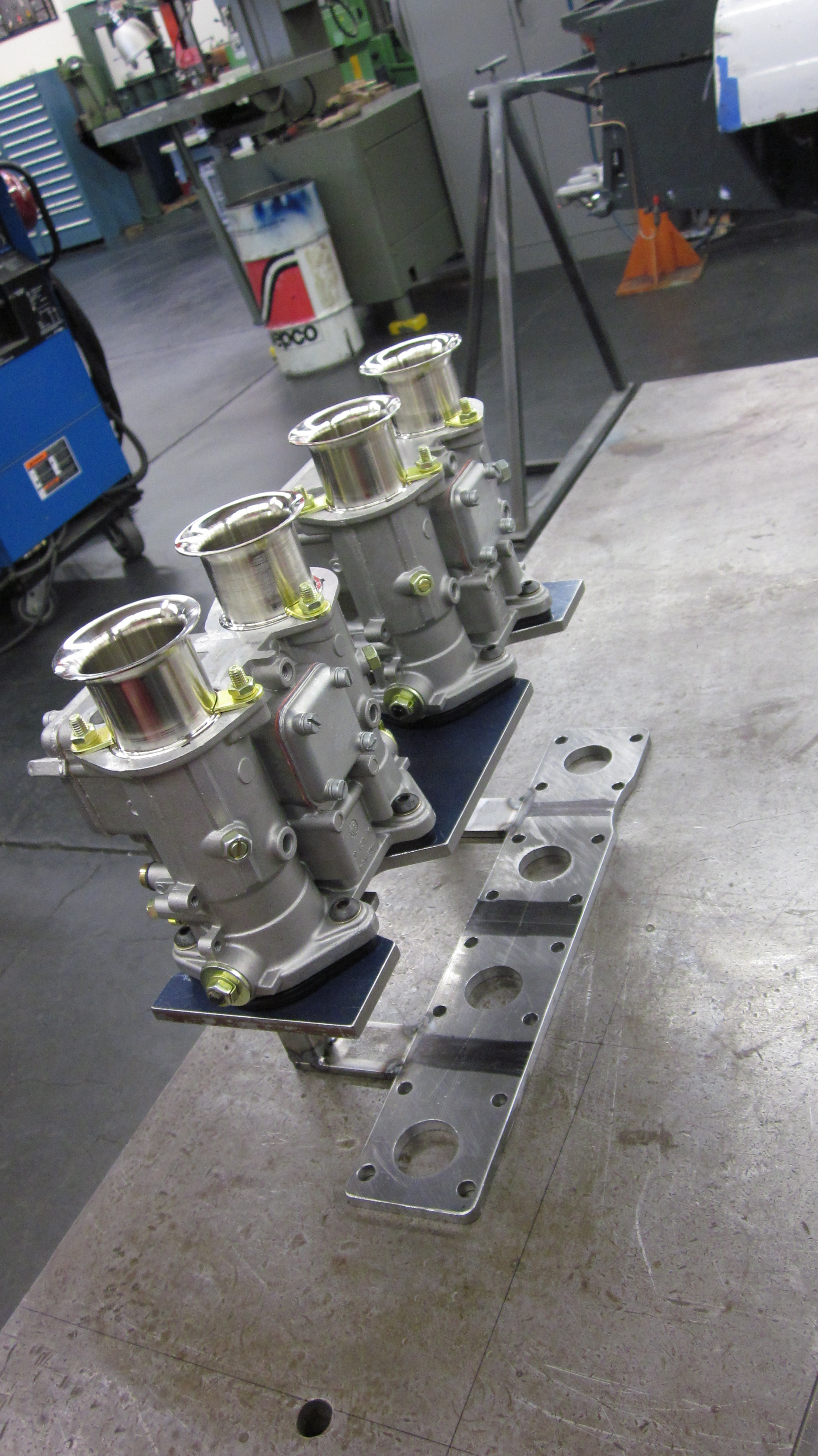 It was also fed by a less than ideal carburetor, pictures of which are not in my files. A new manifold was machined to use a Weber side draft, with the blower intake port being enlarged to suit.