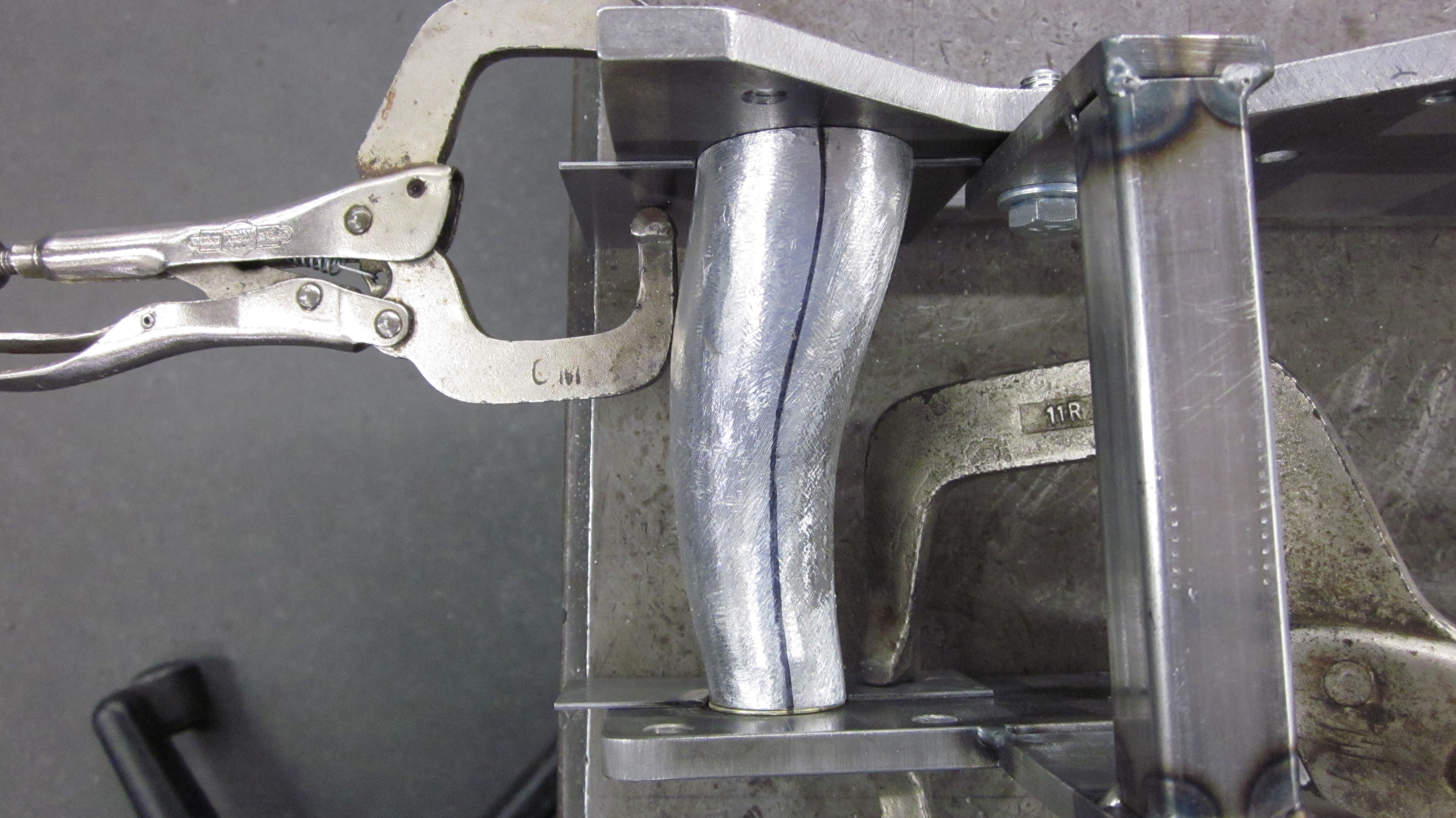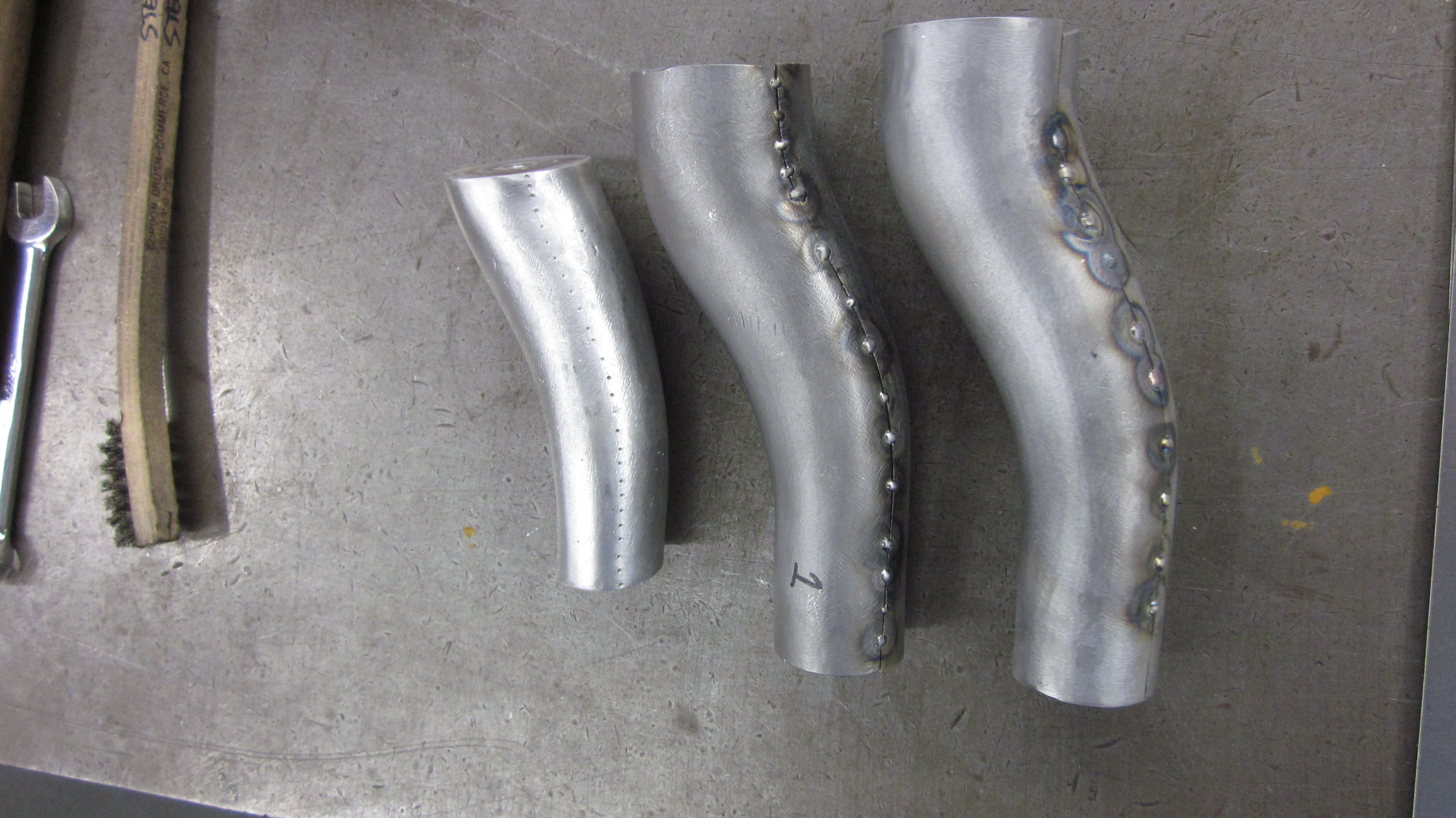 The intake ports were separated by aluminum blocks mechanically attached inside the plenum, then ports were shaped using a special epoxy material that permanently adheres to the metal. Ace fabricator Chuck Mathewson undertook the manifold… fabricated from steel sheet that was formed over solid mandrels and welded together.